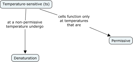 This Concept Map, created with IHMC CmapTools, has information related to: Chapter 3-03 SKM, Temperature-sensitive (ts) cells function only at temperatures that are Permissive, Temperature-sensitive (ts) at a non-permissive temperature undergo Denaturation