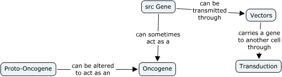 This Concept Map, created with IHMC CmapTools, has information related to: Chapter 3-09 SKM, Vectors carries a gene to another cell through Transduction, src Gene can be transmitted through Vectors, Proto-Oncogene can be altered to act as an Oncogene, src Gene can sometimes act as a Oncogene