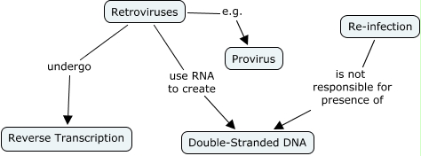 This Concept Map, created with IHMC CmapTools, has information related to: Chapter 3-07 SKM, Re-infection is not responsible for presence of Double-Stranded DNA, Retroviruses e.g. Provirus, Retroviruses use RNA to create Double-Stranded DNA, Retroviruses undergo Reverse Transcription