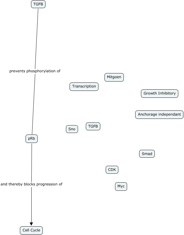 This Concept Map, created with IHMC CmapTools, has information related to: 8.10, TGFB prevents phosphorylation of pRb, pRb and thereby blocks progression of Cell Cycle