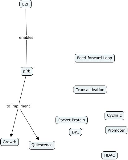 This Concept Map, created with IHMC CmapTools, has information related to: 8.7, pRb to impliment Growth, E2F enables pRb, pRb to impliment Quiescence