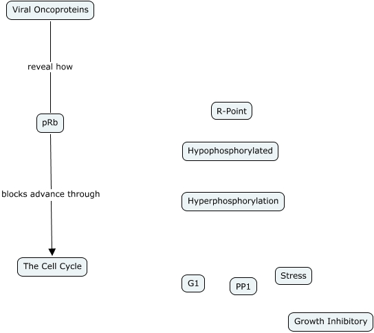 This Concept Map, created with IHMC CmapTools, has information related to: 8.5, pRb blocks advance through The Cell Cycle, Viral Oncoproteins reveal how pRb