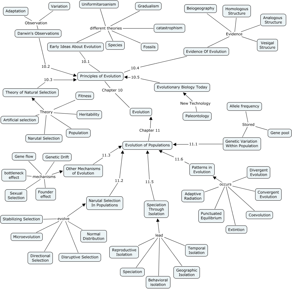 This Concept Map, created with IHMC CmapTools, has information related to: Evolution, Convergent Evolution occurs Patterns in Evolution, bottleneck effect mechanisms Other Mechanisms of Evolution, Reproductive Isolation lead Speciation Through Isolation, Disruptive Selection evolve Narutal Selection In Populations, Population Theory Theory of Natural Selection, Geographic Isolation lead Speciation Through Isolation, Beiogeography Evidence Evidence Of Evolution, Temporal Isolation lead Speciation Through Isolation, Adaptation Observation Darwin's Observations, Paleontology New Technology Evolutionary Biology Today, Analogous Structure Evidence Evidence Of Evolution, Fitness Theory Theory of Natural Selection, Allele frequency Stored Genetic Variation Within Population, Speciation Through Isolation 11.5 Evolution of Populations, Fossils different theories Early Ideas About Evolution, Early Ideas About Evolution 10.1 Principles of Evolution, Theory of Natural Selection 10.3 Principles of Evolution, Narutal Selection In Populations 11.2 Evolution of Populations, Behavioral isolation lead Speciation Through Isolation, Gene pool Stored Genetic Variation Within Population