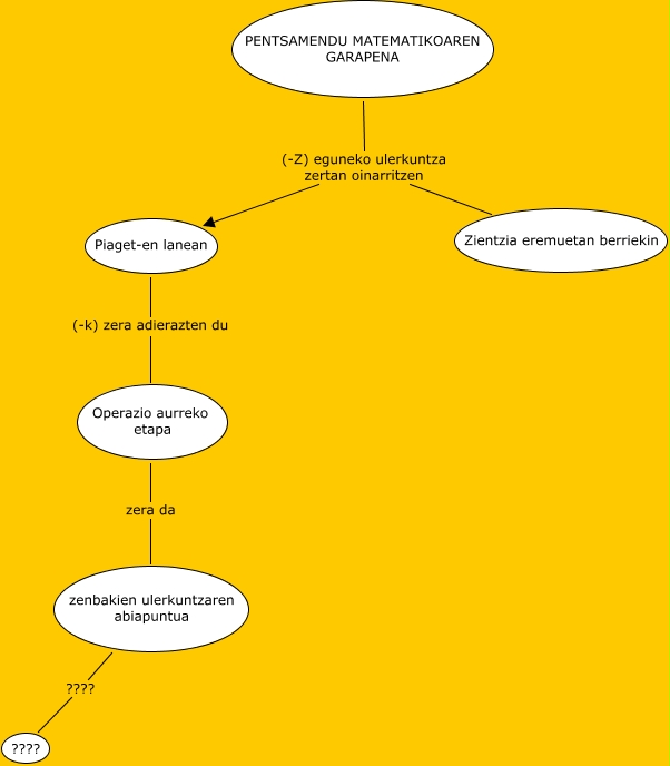 Este mapa conceptual tiene información relacionada a: Sarrera, Piaget-en lanean (-k) zera adierazten du Operazio aurreko etapa, Operazio aurreko etapa zera da zenbakien ulerkuntzaren abiapuntua, zenbakien ulerkuntzaren abiapuntua ???? ????, PENTSAMENDU MATEMATIKOAREN GARAPENA (-Z) eguneko ulerkuntza zertan oinarritzen Zientzia eremuetan berriekin, PENTSAMENDU MATEMATIKOAREN GARAPENA (-Z) eguneko ulerkuntza zertan oinarritzen Piaget-en lanean