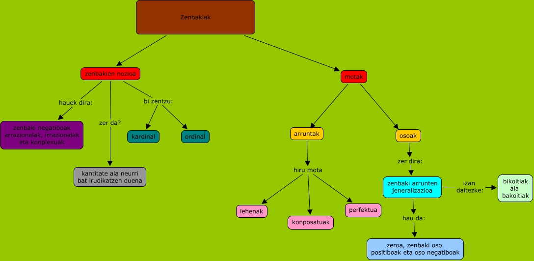 Este Cmap, tiene información relacionada con: Zenbakien nozioa, motak ???? osoak, zenbakien nozioa bi zentzu: ordinal, arruntak hiru mota konposatuak, Zenbakiak ???? zenbakien nozioa, zenbaki arrunten jeneralizazioa izan daitezke: bikoitiak ala bakoitiak, zenbakien nozioa bi zentzu: kardinal, arruntak hiru mota perfektua, Zenbakiak ???? motak, zenbakien nozioa hauek dira: zenbaki negatiboak arrazionalak, irrazionalak eta konplexuak, osoak zer dira: zenbaki arrunten jeneralizazioa, zenbakien nozioa zer da? kantitate ala neurri bat irudikatzen duena, arruntak hiru mota lehenak, zenbaki arrunten jeneralizazioa hau da: zeroa, zenbaki oso positiboak eta oso negatiboak, motak ???? arruntak