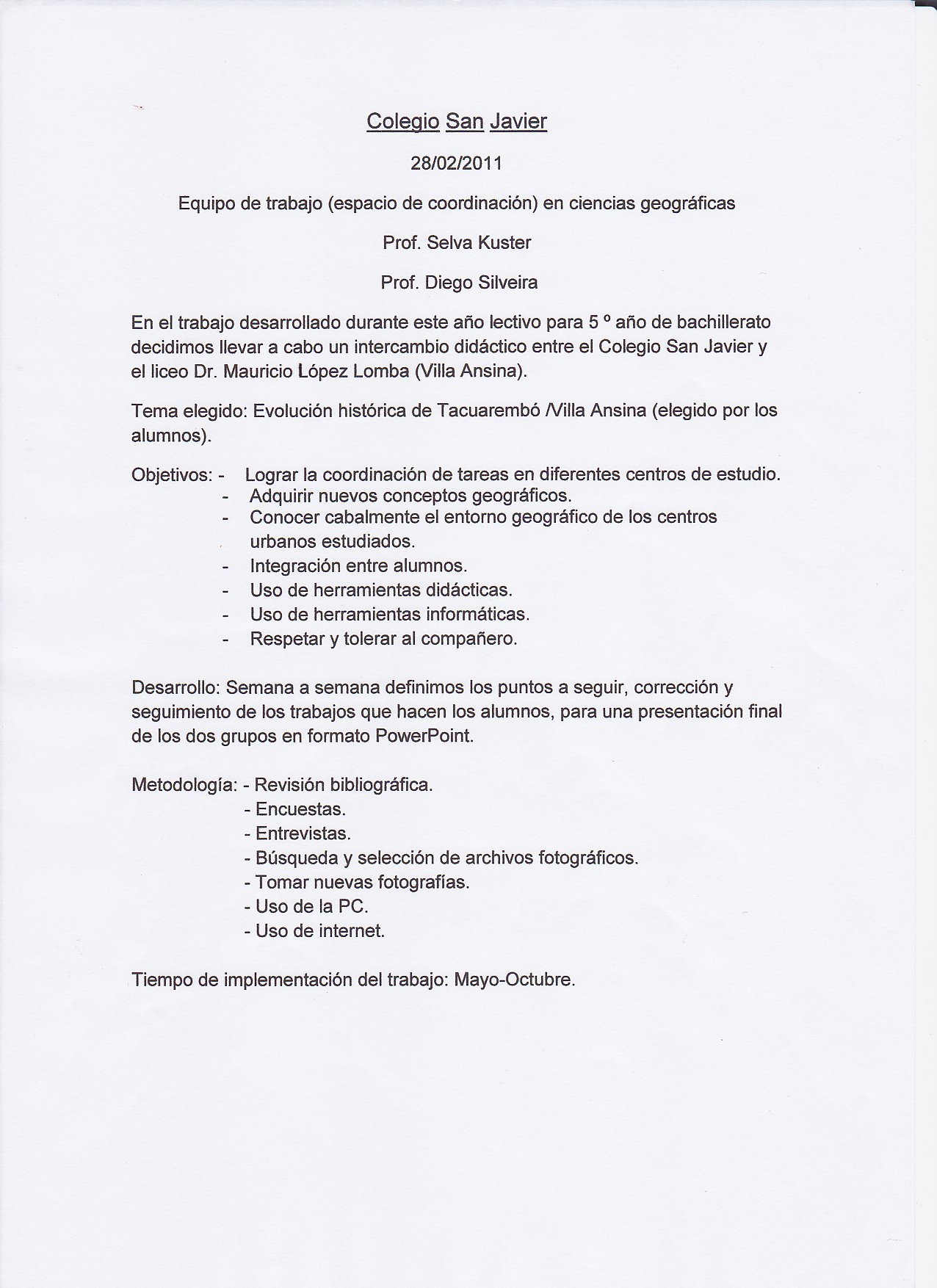 Acta Reunion CAP.doc Acta Reunion CAP 06MAYO.doc Acta Reunion CAP 24JUN.doc Doc. Evaluación Directivos Acta de compromiso.doc Doc. Evaluación directivos Protoc. Aportes.doc Doc. proy. docentes primaria coord. general 2010-01.doc Doc. Proy equipo de maestros N. Inicial 2010.doc Doc. Proy teachers Primaria 2010-01.doc Doc 2.2.3 coordinación externa entre equipos docentes.doc Doc 2.3.1.1 Plan ConjuntodeEducadores 2010.doc Doc 2.3.1.2 Evaluación del plan conjunto de educadores.doc Doc CAP 2010 - EVALUACIÓN.doc Doc Equipos docentes Secundaria(2).doc Doc Evidencia CAP-PE dia 10-09-2010.doc Doc Evidencia CAP-PE día 25-03-10.doc Doc Organigrama de Gobierno y Funcionamiento ABR2011.doc Doc Plan de Coordinacion2010.pdf Doc Proyecto de Dirección Colegio San Javier.doc Doc Sala Geografia memo 2010.jpg Evaluación final equipo maestros 2010 -01.doc Mapa ÁMBITO 2 - San Javier.cmap Mapa Conjunto de los Educadores - San Javier.cmap Mapa Equipo Directivo - San Javier.cmap Mapa Equipos Docentes - San Javier.cmap PCI_a_la_libreta (1).doc PCI_Ambito_II_Estructuras_Organizativas.doc PCI_Ambito_II_Proyecto_de_Direccion_2010.doc PCI_Ambito_II_Proyecto_de_Direccion_2010 (1).doc