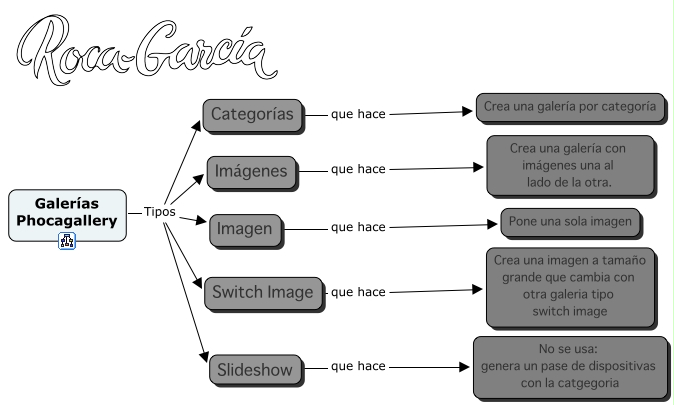 Este Cmap, tiene información relacionada con: Galerías PhocaGallery, Categorías que hace Crea una galería por categoría, Imágenes que hace Crea una galería con imágenes una al lado de la otra., Galerías Phocagallery Tipos Slideshow, Galerías Phocagallery Tipos Switch Image, Switch Image que hace Crea una imagen a tamaño grande que cambia con otra galeria tipo switch image, Galerías Phocagallery Tipos Imagen, Slideshow que hace No se usa: genera un pase de dispositivas con la catgegoria, Imagen que hace Pone una sola imagen, Galerías Phocagallery Tipos Imágenes, Galerías Phocagallery Tipos Categorías
