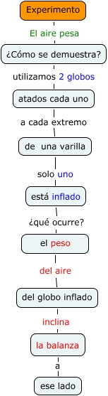 Este Cmap, tiene información relacionada con: Sin Título 2, la balanza a ese lado, el peso del aire del globo inflado, del globo inflado inclina la balanza, ¿Cómo se demuestra? utilizamos 2 globos atados cada uno, de una varilla solo uno está inflado, atados cada uno a cada extremo de una varilla, Experimento El aire pesa ¿Cómo se demuestra?, está inflado ¿qué ocurre? el peso