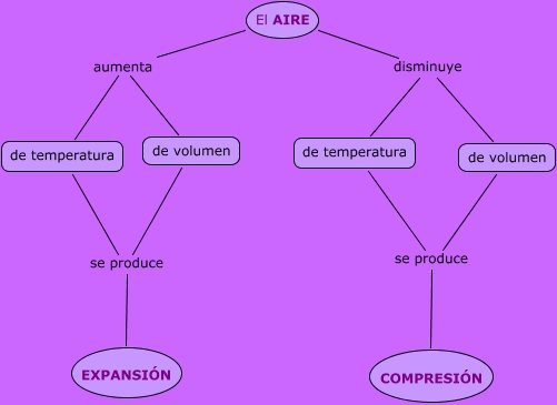 Este Cmap, tiene información relacionada con: EXPERIMENTO 1.cmap, El AIRE aumenta de volumen, de volumen se produce COMPRESIÓN, de temperatura se produce EXPANSIÓN, de temperatura se produce COMPRESIÓN, El AIRE aumenta de temperatura, El AIRE disminuye de temperatura, de volumen se produce EXPANSIÓN, El AIRE disminuye de volumen