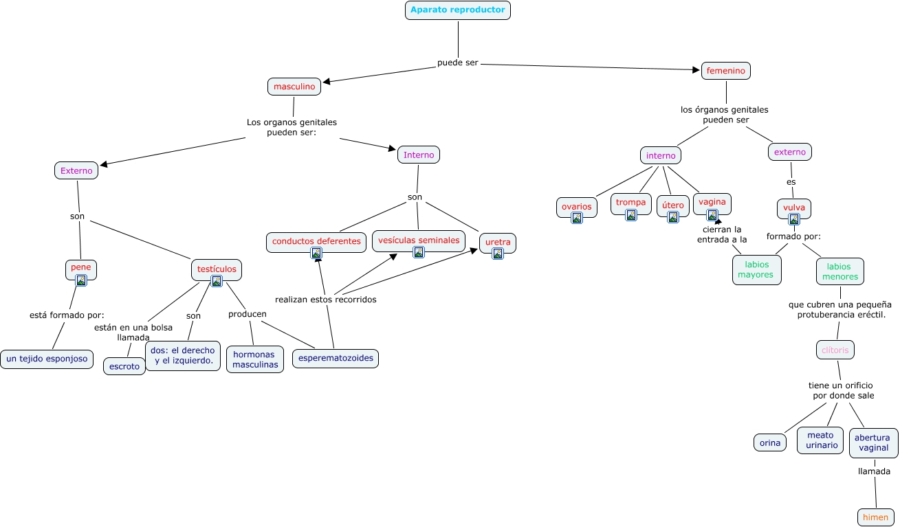 Este Cmap, tiene información relacionada con: aparato reproductor terminado con imagen, Interno son conductos deferentes, masculino Los organos genitales pueden ser: Interno, femenino los órganos genitales pueden ser interno, clítoris tiene un orificio por donde sale meato urinario, vulva formado por: labios menores, abertura vaginal llamada himen, Interno son uretra, interno son ovarios, clítoris tiene un orificio por donde sale orina, esperematozoides realizan estos recorridos uretra, masculino Los organos genitales pueden ser: Externo, vulva formado por: labios mayores, Aparato reproductor puede ser femenino, interno son vagina, interno son útero, Externo son pene, Externo son testículos, labios mayores cierran la entrada a la vagina, Aparato reproductor puede ser masculino, clítoris tiene un orificio por donde sale abertura vaginal