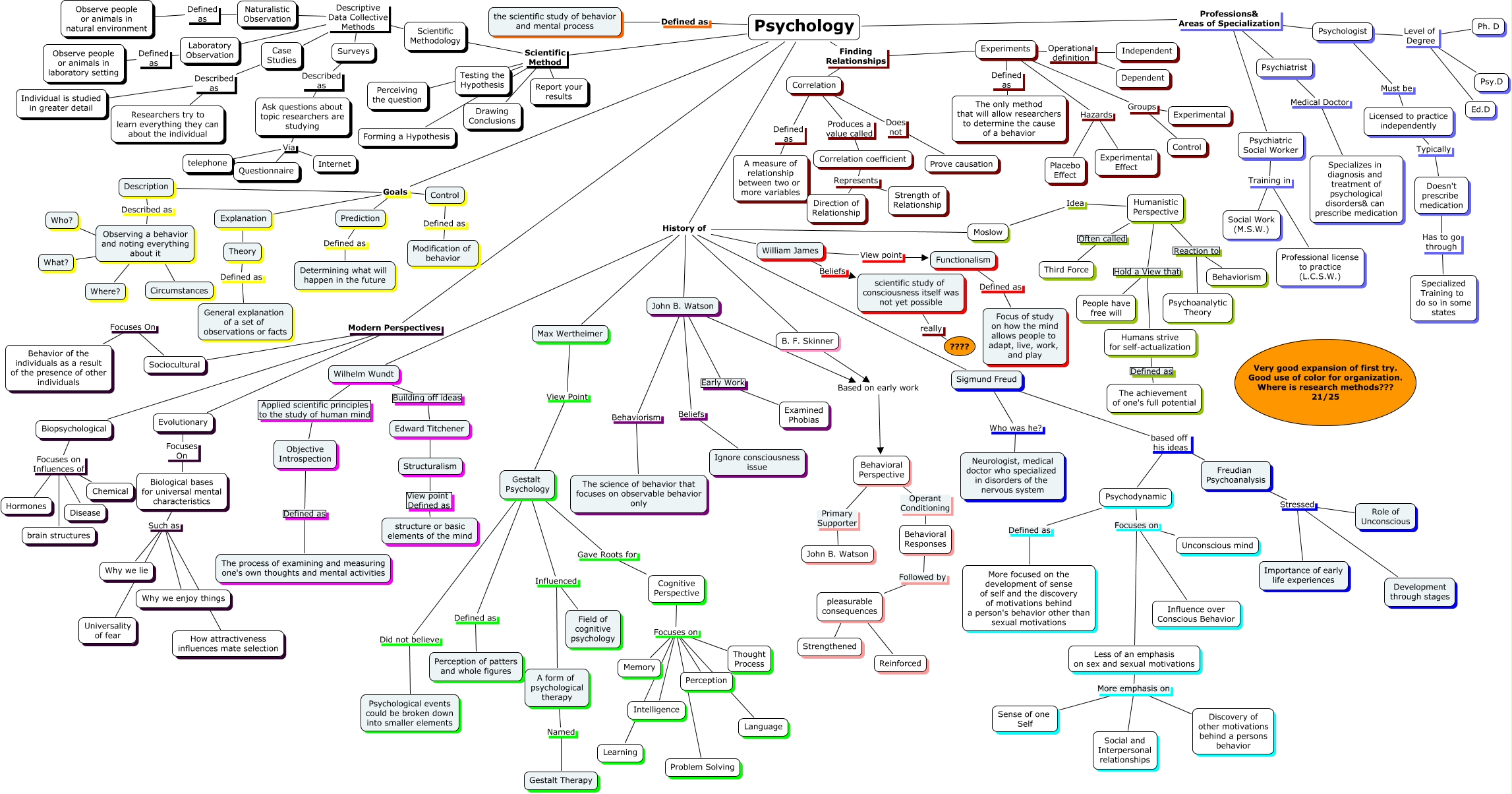This Concept Map, created with IHMC CmapTools, has information related to: Hill ch 1 retry 21, Max Wertheimer View Point Gestalt Psychology, Psychology History of Max Wertheimer, Behavioral Perspective Operant Conditioning Behavioral Responses, pleasurable consequences Consisting of Strengthened, Biological bases for universal mental characteristics Such as Why we enjoy things, Cognitive Perspective Focuses on Learning, Biological bases for universal mental characteristics Such as Why we lie, Psychologist Level of Degree Ph. D, Gestalt Psychology Influenced Field of cognitive psychology, Humans strive for self-actualization Defined as The achievement of one's full potential, Psychology Scientific Method Perceiving the question, Psychiatrist Medical Doctor Specializes in diagnosis and treatment of psychological disorders& can prescribe medication, Psychology Modern Perspectives Sociocultural, Psychology Scientific Method Scientific Methodology, Experiments Groups Control, Wilhelm Wundt Building off ideas Edward Titchener, Psychology Professions& Areas of Specialization Psychiatric Social Worker, William James History of B. F. Skinner, Cognitive Perspective Focuses on Memory, Description Described as Observing a behavior and noting everything about it