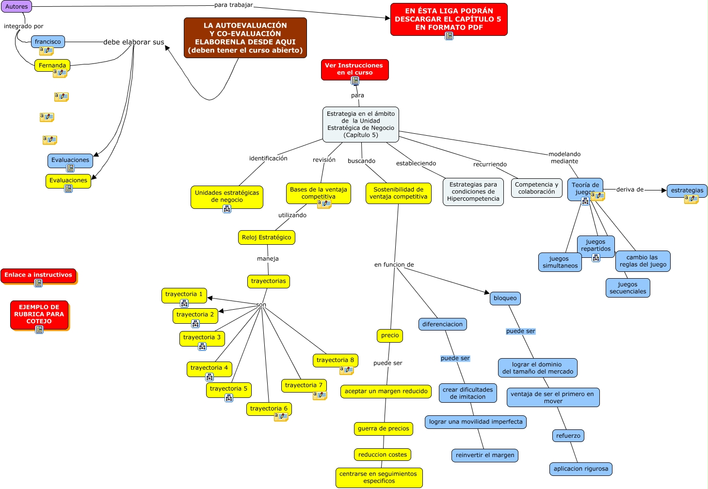 Este Cmap, tiene información relacionada con: Capitulo 5, Sostenibilidad de ventaja competitiva en funcion de bloqueo, Estrategia en el ámbito de la Unidad Estratégica de Negocio (Capítulo 5) para Ver Instrucciones en el curso, lograr una movilidad imperfecta ???? reinvertir el margen, francisco debe elaborar sus Evaluaciones, Autores integrado por Fernanda, trayectorias son trayectoria 3, Estrategia en el ámbito de la Unidad Estratégica de Negocio (Capítulo 5) estableciendo Estrategias para condiciones de Hipercompetencia, trayectorias son trayectoria 7, Teoría de juegos ???? juegos secuenciales, ventaja de ser el primero en mover ???? refuerzo, Sostenibilidad de ventaja competitiva en funcion de diferenciacion, guerra de precios ???? reduccion costes, Teoría de juegos deriva de estrategias, bloqueo puede ser lograr el dominio del tamaño del mercado, Estrategia en el ámbito de la Unidad Estratégica de Negocio (Capítulo 5) identificación Unidades estratégicas de negocio, Teoría de juegos ???? juegos repartidos, trayectorias son trayectoria 8, refuerzo ???? aplicacion rigurosa, trayectorias son trayectoria 4, crear dificultades de imitacion ???? lograr una movilidad imperfecta