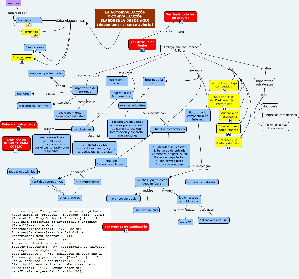 Este Cmap, tiene información relacionada con: Porter, Futuro de la compeencia en Internet el despiegue presione muchas "punto com" quedan fuera, Regreso a los fundamentos trata 2 conclusiones, Strategy and the Internet M. Porter establece Regreso a los fundamentos, 5 fuerzas competitivas ???? 1. intesidad de rvalidad 2. barreras de entrada 3.amenaza de pdct. susti. Poder de negociación 4. con proveedores 5. con compradores, Internet y la Industria se relaciona con 5 fuerzas competitivas, muchas "punto com" quedan fuera anticipa menor rivalidad, Futuro de la compeencia en Internet el despiegue presione sobre la rentabilidad, Mito del "Primero en Mover" brindarian ventajas competitivas, fernanda debe elaborar sus Evaluaciones, Strategy and the Internet M. Porter indica Internet y ventaja competitiva, ventajas competitivas ???? a los primeros, Strategy and the Internet M. Porter indica Internet como complemento, Strategy and the Internet M. Porter indica Seis principios del Posicionamiento Estratégico, Strategy and the Internet M. Porter reformula Internet y la Industria, Importancia de Internet brinda mejores oportunidades, alta rentabilidad ???? a los primeros, conclusiones primera empresas activas son negocios artificiales y apoyados por el capital facilmente disponible., Autores integrado por francisco ...., Imperativas estratégicas para Fin de la Nueva Econoomía, Strategy and the Internet M. Porter analiza Imperativas estratégicas