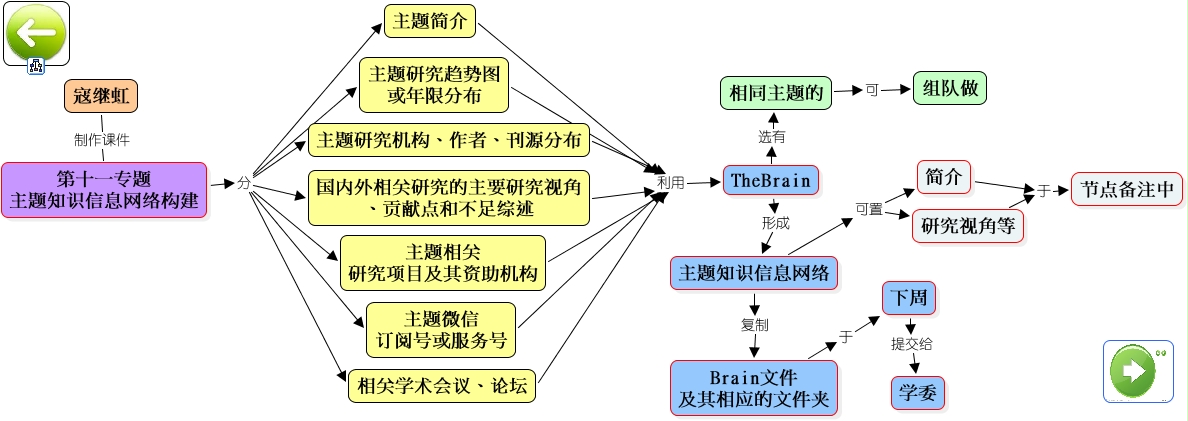 此概念图以 IHMC CmapTools 创建, 内含信息有关于: 主题知识信息网络构建(2013信管), 第十一专题 主题知识信息网络构建 分 主题研究趋势图 或年限分布, 第十一专题 主题知识信息网络构建 分 主题微信 订阅号或服务号, 研究视角等 于 节点备注中, 第十一专题 主题知识信息网络构建 分 主题相关 研究项目及其资助机构, 下周 提交给 学委, 国内外相关研究的主要研究视角 、贡献点和不足综述 利用 TheBrain, 主题简介 利用 TheBrain, 相关学术会议、论坛 利用 TheBrain, 第十一专题 主题知识信息网络构建 分 主题简介, TheBrain 选有 相同主题的, 主题研究机构、作者、刊源分布 利用 TheBrain, 相同主题的 可 组队做, Brain文件 及其相应的文件夹 于 下周, TheBrain 形成 主题知识信息网络, 主题微信 订阅号或服务号 利用 TheBrain, 第十一专题 主题知识信息网络构建 分 国内外相关研究的主要研究视角 、贡献点和不足综述, 第十一专题 主题知识信息网络构建 分 相关学术会议、论坛, 主题知识信息网络 可置 简介, 第十一专题 主题知识信息网络构建 分 主题研究机构、作者、刊源分布, 主题研究趋势图 或年限分布 利用 TheBrain