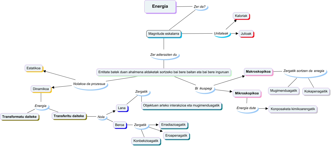 Este Cmap, tiene información relacionada con: hezkuntza_136, Makroskopikoa Zergatik sortzen da enegia Mugimenduagatik, Entitate batek duen ahalmena aldaketak sortzeko bai bere baitan eta bai bere inguruan Bi ikuspegi Mikroskopikoa, Konbekzioagatik Zergatik Eroapenagatik, Transferitu daiteke Nola Beroa, Energia Zer da? Magnitude eskalarra, Beroa Zergatik Erradiazioagatik, Magnitude eskalarra Unitateak Kaloriak, Entitate batek duen ahalmena aldaketak sortzeko bai bere baitan eta bai bere inguruan Nolakoa da prozesua Estatikoa, Beroa Zergatik Eroapenagatik, Makroskopikoa Zergatik sortzen da enegia Kokapenagaitik, Dinamikoa Energia Transformatu daiteke, Dinamikoa Energia Transferitu daiteke, Konbekzioagatik Zergatik Erradiazioagatik, Transferitu daiteke Nola Lana, Magnitude eskalarra Unitateak Julioak, Entitate batek duen ahalmena aldaketak sortzeko bai bere baitan eta bai bere inguruan Nolakoa da prozesua Dinamikoa, Lana Zergatik Objektuen arteko interakzioa eta mugimenduagatik, Mikroskopikoa Energia dute Konposaketa kimikoarengatik, Entitate batek duen ahalmena aldaketak sortzeko bai bere baitan eta bai bere inguruan Bi ikuspegi Makroskopikoa, Magnitude eskalarra Zer adierazten du Entitate batek duen ahalmena aldaketak sortzeko bai bere baitan eta bai bere inguruan
