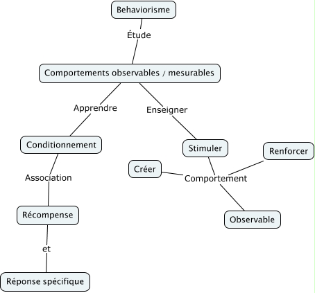This Concept Map, created with IHMC CmapTools, has information related to: Behaviorisme, Récompense et Réponse spécifique, Renforcer Comportement Observable, Conditionnement Association Récompense, Créer Comportement Observable, Comportements observables / mesurables Apprendre Conditionnement, Behaviorisme Étude Comportements observables / mesurables, Stimuler Comportement Observable, Comportements observables / mesurables Enseigner Stimuler