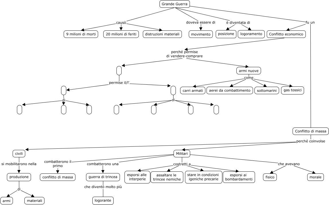 Questa Cmap, creata con IHMC CmapTools, contiene informazioni relative a: 4 Sintesi coneguenze e bilancio, di, Grande Guerra è diventata di posizione, Conflitto economico perché permise di vendere-comprare, armi nuove come sottomarini, Militari che avevano fisico, Grande Guerra fu un Conflitto di massa, di, di, Conflitto di massa perché coinvolse Militari, di, armi nuove come aerei da combattimento, Militari costretti a stare in condizioni igeniche precarie, di, Militari che avevano morale, Militari costretti a esporsi alle interperie, Grande Guerra fu un Conflitto economico, Conflitto di massa perché coinvolse civili, armi nuove come gas tossici, Grande Guerra causò distruzioni materiali, produzione di armi