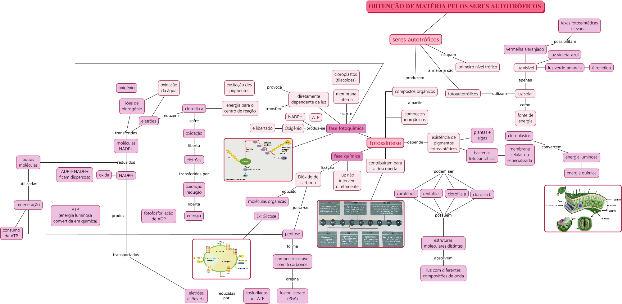 Esse mapa conceitual, produzido no IHMC CmapTools, tem a informação relacionada a: BG11ºA1_6_13_16_T5-Obtenção de matéria pelos seres autotróficos, existência de pigmentos fotossintéticos plantas e algas, contribuiram para a descoberta, clorofila b possuem estruturas moleculares distintas, energia química, pentose forma composto instável com 6 carbonos, compostos orgânicos a partir compostos inorgânicos, fotossíntese fase fotoquímica, plantas e algas cloroplastos, existência de pigmentos fotossintéticos podem ser clorofila b, composto instável com 6 carbonos origina fosfoglicerato (PGA), moléculas NADP+ reduzidos NADPH, moléculas orgãnicas Ex: Glicose, luz verde-amarela é refletida, cloroplastos convertem energia luminosa, luz violeta-azul possibilitam taxas fotossintéticas elevadas, compostos orgânicos fotossíntese, clorofila a sofre oxidação, oxidação da água oxigénio, luz solar como fonte de energia, oxidação liberta eletrões