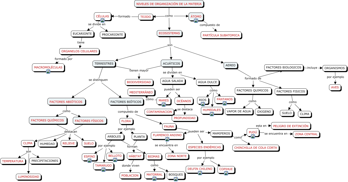 Este Cmap, tiene información relacionada con: nicolas portalier IC mapa conceptual, CÉLULAS se divide en PROCARIONTE, FACTORES ABIÓTICOS como FACTORES QUIÍMICOS, AGUA DULCE como PANTANOS, FAUNA pueden ser ESPECIES ENDÉMICAS, FLORA por ejemplo PLANTA, FACTORES QUIÍMICOS destacan CLIMA, ECOSISTEMAS son TERRESTRES, ORGANISMOS por ejemplo AVES, TERRESTRES se distinguen FACTORES ABIÓTICOS, OCÉANOS se destaca CONTAMINACION, NIVELES DE ORGANIZACIÓN DE LA MATERIA como TEJIDO, AGUA DULCE como HUMEDALES, FACTORES FÍSICOS destacan HUMEDAD, CLIMA son TEMPERATURA, FACTORES QUIÍMICOS destacan HUMEDAD, ARBOLES forman BIOMAS, ACUÁTICOS se dividen en AGUA DULCE, CLIMA son PRECIPITACIONES, ECOSISTEMAS son AEREO, ÁTOMO compuesto de PARTÍCULA SUBATOMICA