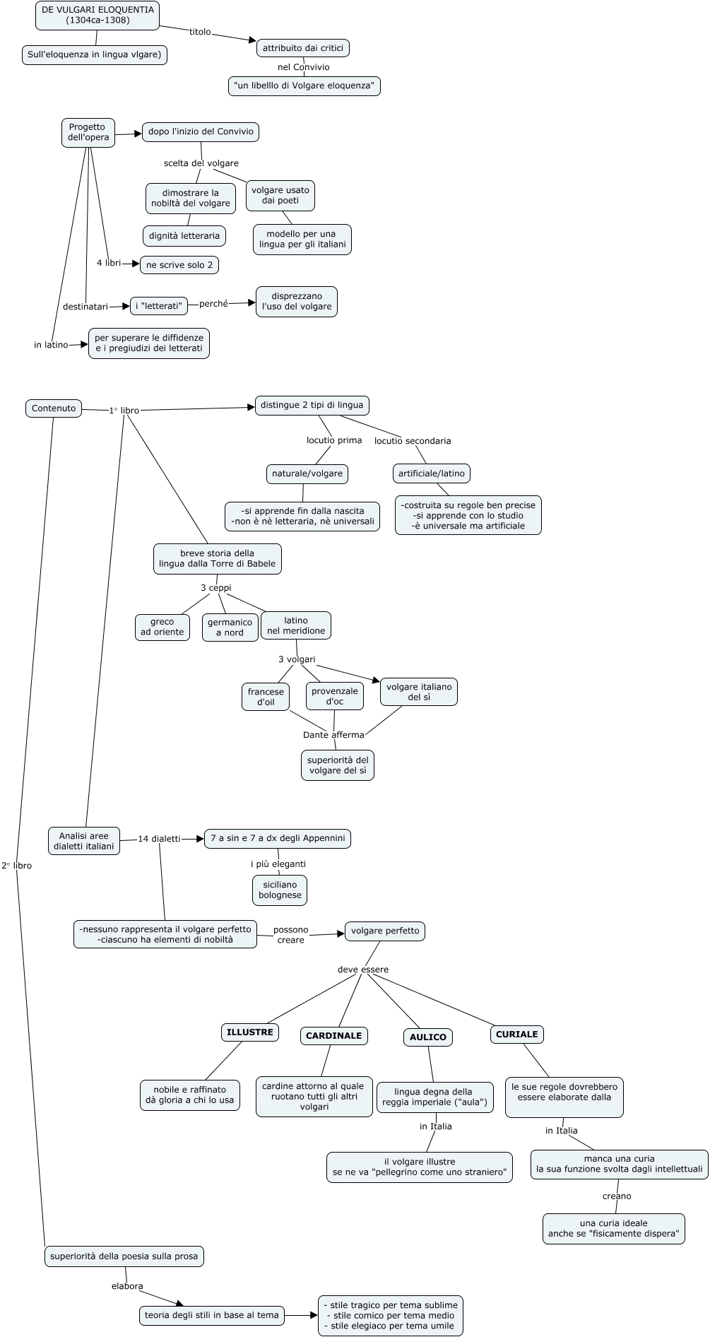 Questa Cmap, creata con IHMC CmapTools, contiene informazioni relative a: 4_De vulgari eloquentia, -nessuno rappresenta il volgare perfetto -ciascuno ha elementi di nobiltà possono creare volgare perfetto, provenzale d'oc Dante afferma superiorità del volgare del sì, dopo l'inizio del Convivio scelta del volgare volgare usato dai poeti, distingue 2 tipi di lingua locutio prima naturale/volgare, manca una curia la sua funzione svolta dagli intellettuali creano una curia ideale anche se "fisicamente dispera", 7 a sin e 7 a dx degli Appennini i più eleganti siciliano bolognese, CARDINALE ???? cardine attorno al quale ruotano tutti gli altri volgari, Contenuto 1° libro Analisi aree dialetti italiani, DE VULGARI ELOQUENTIA (1304ca-1308) titolo attribuito dai critici, attribuito dai critici nel Convivio "un libelllo di Volgare eloquenza", teoria degli stili in base al tema ???? - stile tragico per tema sublime - stile comico per tema medio - stile elegiaco per tema umile, breve storia della lingua dalla Torre di Babele 3 ceppi latino nel meridione, ILLUSTRE ???? nobile e raffinato dà gloria a chi lo usa, volgare perfetto deve essere ILLUSTRE, volgare perfetto deve essere CURIALE, Contenuto 2° libro superiorità della poesia sulla prosa, Progetto dell'opera destinatari i "letterati", dopo l'inizio del Convivio scelta del volgare dimostrare la nobiltà del volgare, volgare perfetto deve essere AULICO, distingue 2 tipi di lingua locutio secondaria artificiale/latino
