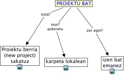proieksor, PROIEKTU BAT non? aukeratu karpeta lokalean, PROIEKTU BAT zer egin? izen bat emanez, PROIEKTU BAT nola? Proiektu berria (new project) sakatuz